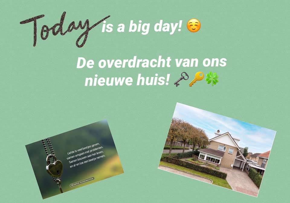 1 juni 2021: Vandaag is het eindelijk zover! We krijgen de sleutel van ons huis!!!